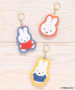 ミッフィーのもこもこサガラ刺繍が目を引く、ポップで可愛いキーホルダー。