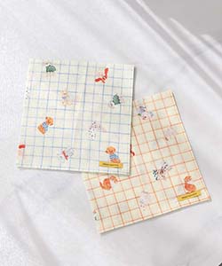 ハンカチとしてはもちろんお弁当を包んだり、収納の目隠しやバッグのアクセントなど、大判サイズなので1枚で様々な使い方を楽しめます。