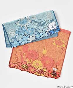 ムーミンとリトルミイのアップリケ刺繍入りのミニタオル。