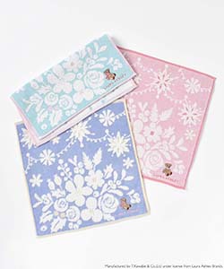華やかなフラワー刺繍に、ちょこんと座ったベアが可愛らしいタオルハンカチです。