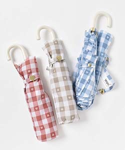 ポップな印象のギンガムハートの折りたたみ傘。