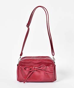 ツヤのあるフェイクレザーにフロントのリボンがポイント。