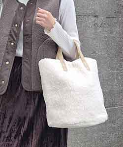 秋冬のコーデに映えるふんわりボアのトートバッグ。