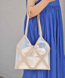 クロシェ編みとクリア素材の透け感がポイントの涼し気なトートバッグ。