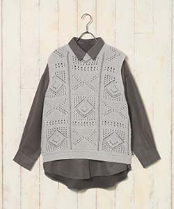 そのまま着るだけでレイヤードスタイルが完成するニットベスト付ブラウス。