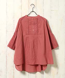 胸元にはピンタック、所々に施された透け感のあるレースなどシンプルながらも女性らしい印象です。