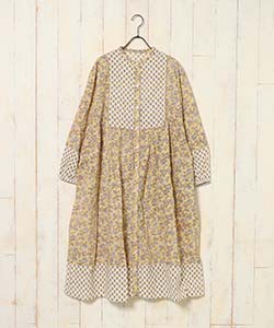 軽やかなインド綿を使用した、フラワー柄と切替デザインがポイントのワンピース。