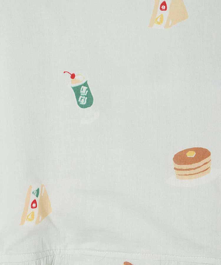 手書き風のクリームソーダ・ホットケーキ・フルーツサンド・プリンがたくさん描かれた周りの目を引くデザイン。