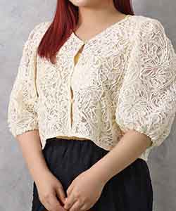 繊細なコード編みが美しく、レースの程よい透け感が魅力のカーディガン。