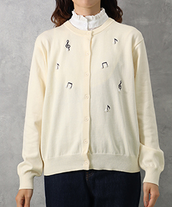 音楽モチーフのブルーブルーエオリジナルカーディガン。