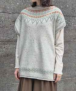 落ち着いたカラーに首元のカラフルなノルディック柄が程よいアクセントになっています。