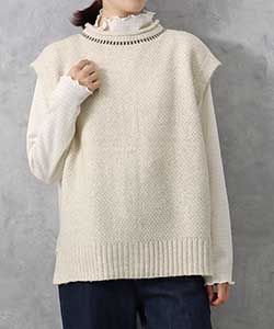 ゆったりめなシルエットでアームホールも大きく開いているので、少し厚手のトップスの上にも羽織ることができます。