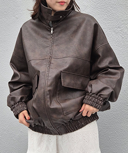 マットなツヤ感が魅力のフェイクレザージャケット。