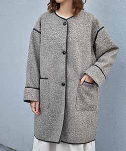 カラーは柔らかなトーンの杢アイボリー・ブークレブラウン・ブークレグレイの3色展開、温もりのある質感が秋冬コーデにぴったりです。