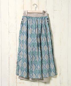 華やかなオリエンタル柄が目を引くスカートパンツ。