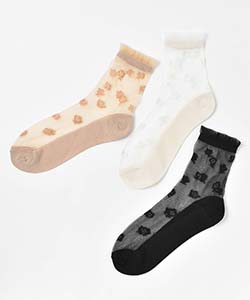 ≪SALE≫シースルーワントーン花柄ロークルーソックス