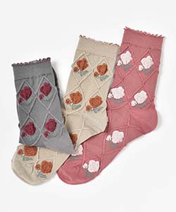 ソックス全体に施された少しふっくらしたデザインがポイントで、スカートやロールアップしたパンツの裾から覗かせたくなるキュートさ◎