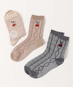 サガラ刺繍のチェリーがポイントのロークルーソックス。