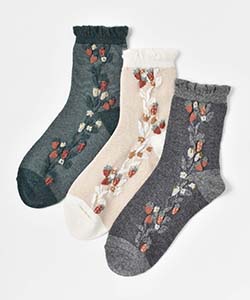 ふっくらしたイチゴがポイントのロークルーソックス。