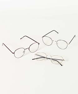 知的な印象の細フレームサングラス。