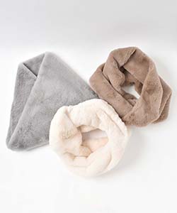 肌あたりの良いなめらかなファーが首周りにしっかりフィットする抜群なあたたかさです。