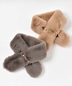 なめらかなフェイクファーのマフラー。