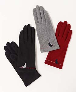 手元にネコ刺繍が施された可愛らしいデザイン。