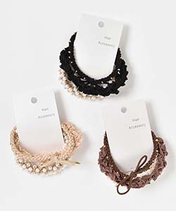 粒パールレースニットファーヘアゴムセット
