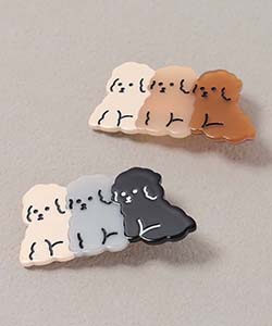 3匹のイヌが仲良く並んだキュートなヘアクリップ。