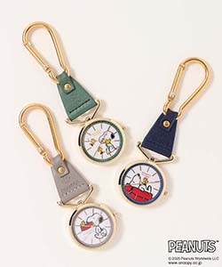 カラーはグレイ・グリーン・ネイビーの3色展開、レザーベルトにPEANUTSと肉球が型押しされたおしゃれなデザインです。