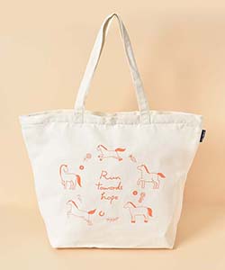 2026年の干支のうまが描かれた可愛らしいデザインのバッグにはファスナーと内ポケット付き、バッグのデザインカラーはオレンジです。