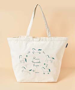 2026年の干支のうまが描かれた可愛らしいデザインのバッグにはファスナーと内ポケット付き、バッグのデザインカラーはグリーンです。