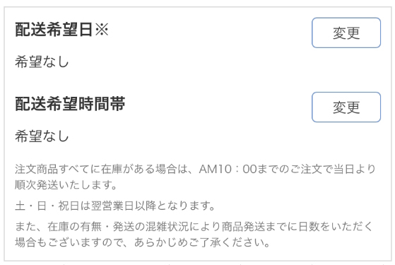 設定はご注文時に「配送希望日時指定」より表示された日時の範囲でご選択いただけます。